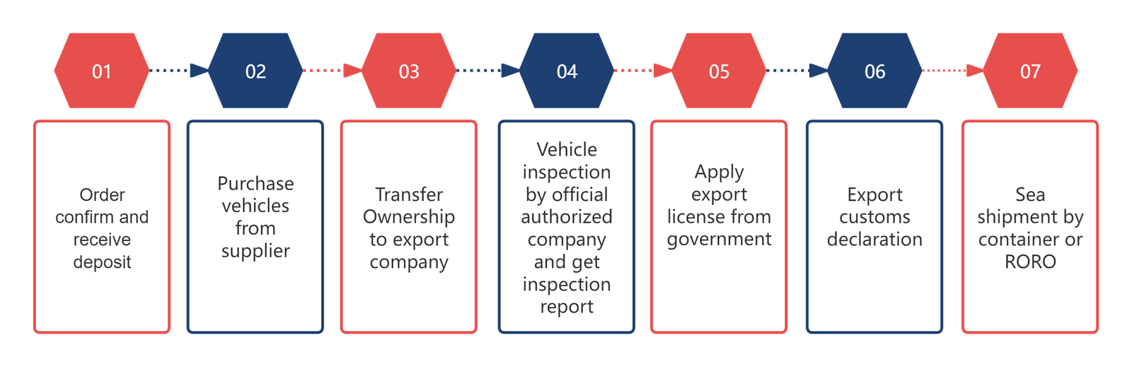 Our streamlined, all-in-one service makes exporting vehicles from China faster and easier than ever. Here is our standard end-to-end timeline: